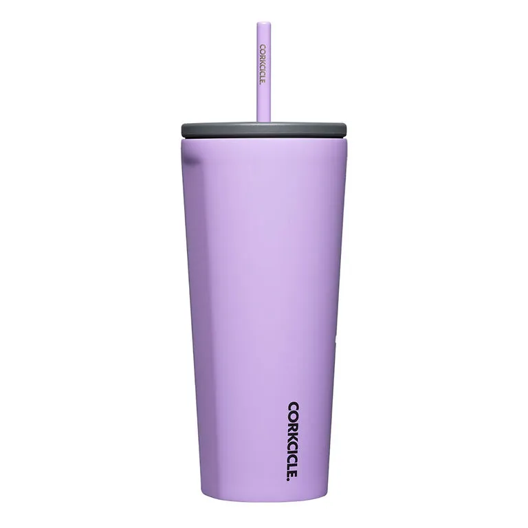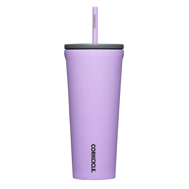 - Corkcicle lilac stainless steel insulated tumbler features a solid lid with ceramic straw.