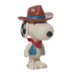 - High-quality stone resin Jim Shore Peanuts miniature figurine features Snoopy dressed as a cowboy.