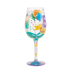Lolita Happy Birthday Balloons Handpainted Stemless Wine Glass, 20 Oz.