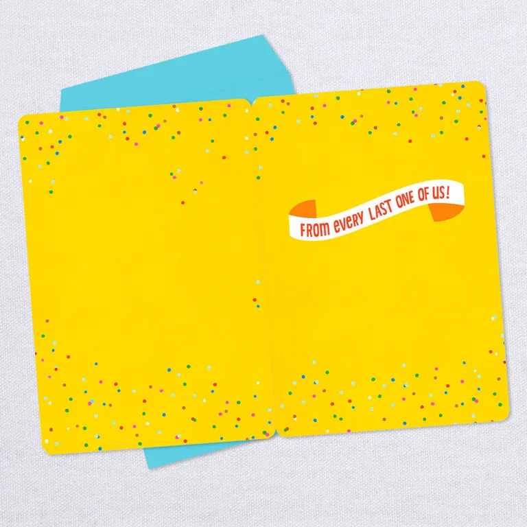 Cute kitty cats and puppy dogs dressed in b-day party hats deliver big happy birthday wishes that can’t be missed! Giant 11×16 birthday card offers plenty of space for the whole group to add their own birthday shout-outs. Glossy accents and pom-pom attachments add a fun touch. Great for coworkers’ celebrations, kids’ birthday parties, milestone birthdays and more.