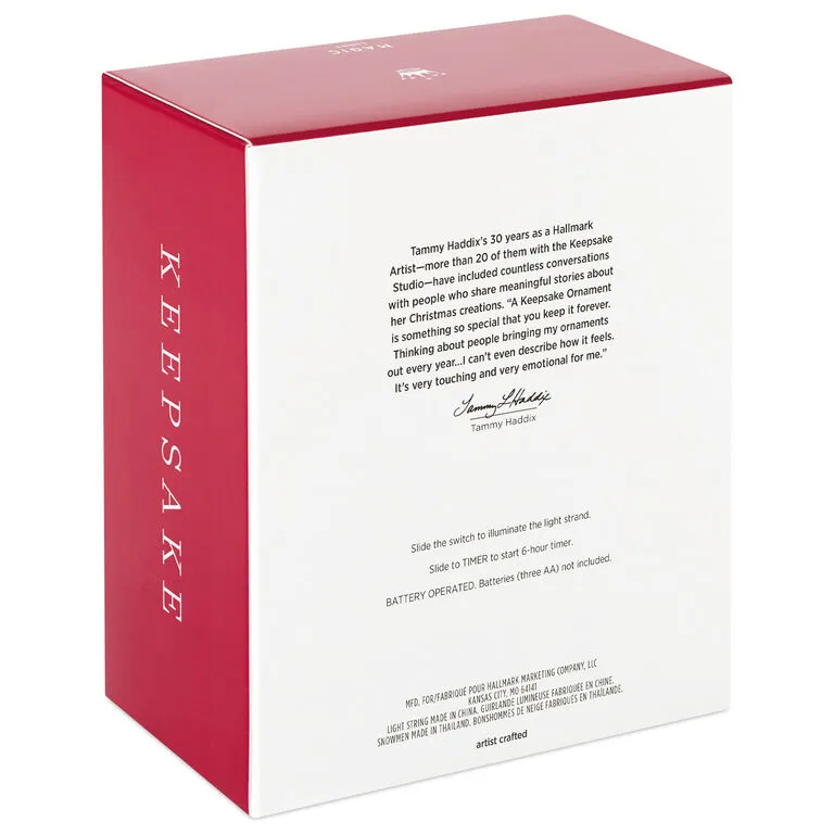 - Includes: Keepsake Christmas light string in gift box for easy gift giving, preservation and storage. Requires three (3) AA replaceable batteries (not included).