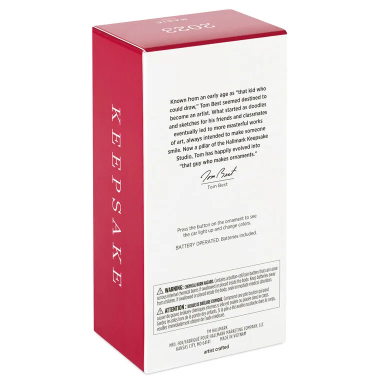 - Key Features: Press the button on the Magic Light ornament to see the car light up and change colors.