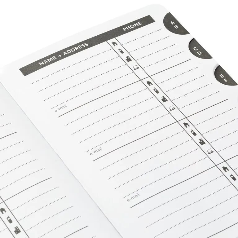 Stay organized in chic style with this hardback matte gold address book. It holds 4 lines of information per contact, including an email address and multiple phone numbers. Twelve alphabetical tabs along the side make it easy to find info, plus spots in back hold emergency contacts, frequently called numbers, passwords, birthdays and anniversaries.