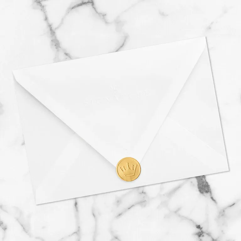 - Includes one card and one lined envelope with a Gold Crown seal. Envelope color may vary.