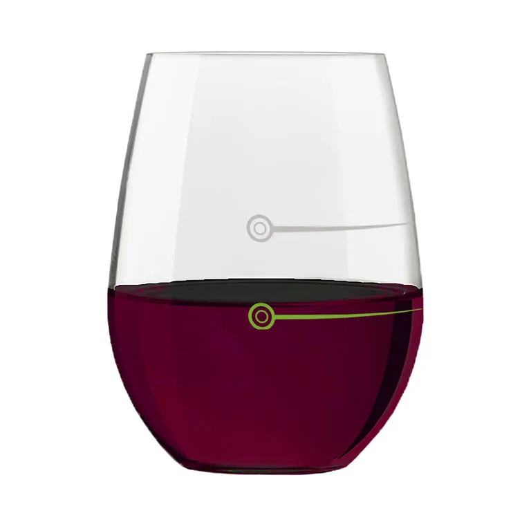 - Pourtions Just Right stemless wine glass features two pour lines and fun messages.